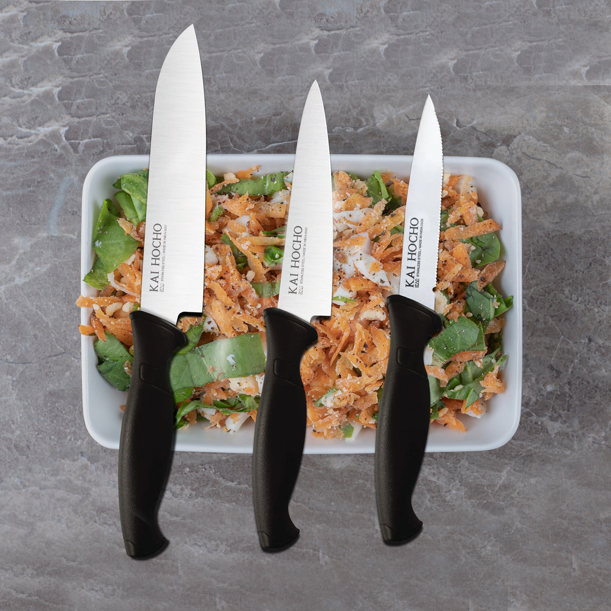 Kai Hocho Kitchen Knife Set (Pack of 3) (Serrated Knife 9.6cm, Utility (M) Knife 14.5cm, Utility (S) Knife 12.5cm Blade)